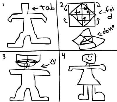 2. Create a cootie catcher for the head, glue two sides together,